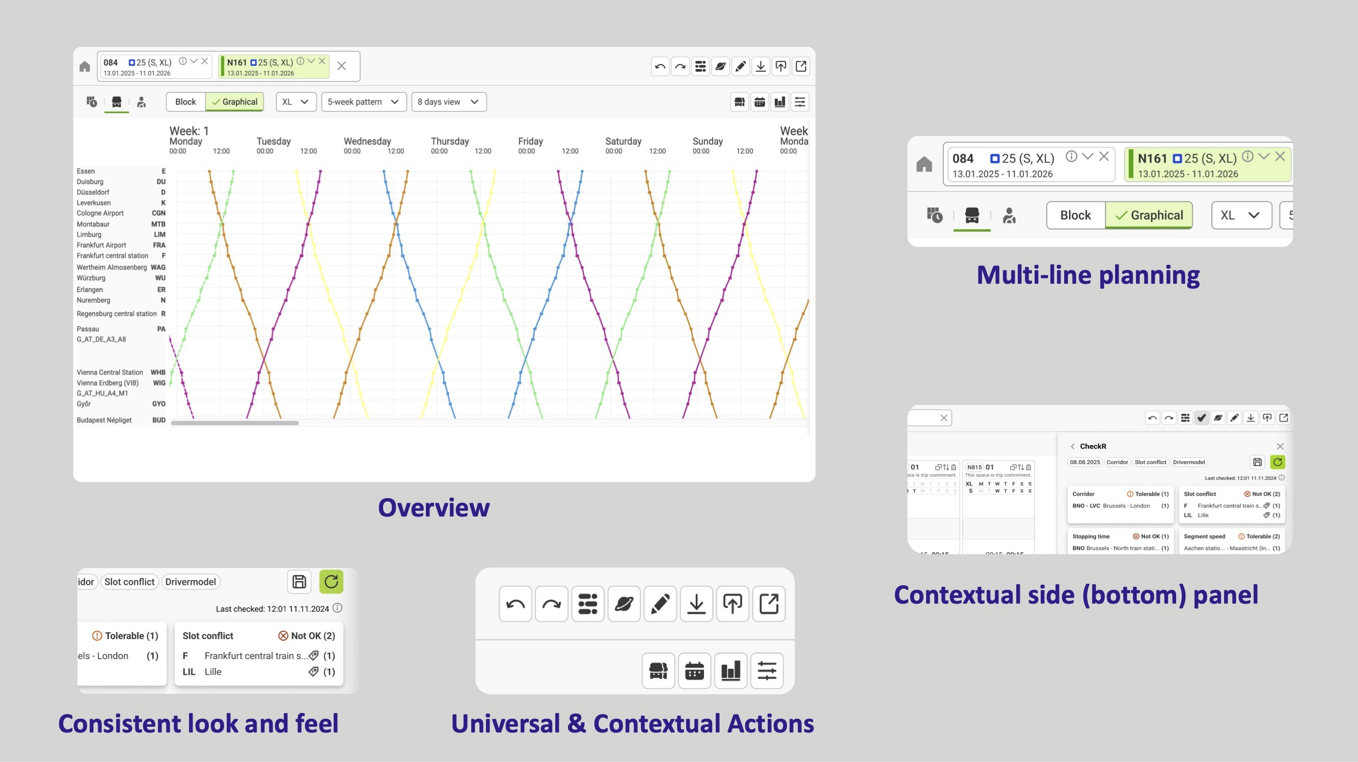 Each tool featured completely different visual designs, layouts, and terminology: the same functionality would be labeled “Route A” in one system and “Line B” in another, creating cognitive confusion and increasing learning curves for both experienced planners and new hires.